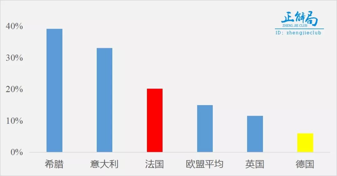 在另一方面,法国的失业率常年保持在9%以上,青年失业率更是在20%以上。作为比较,德国近5年失业率在3%—5%之间,青年失业率也只有6%—8%。