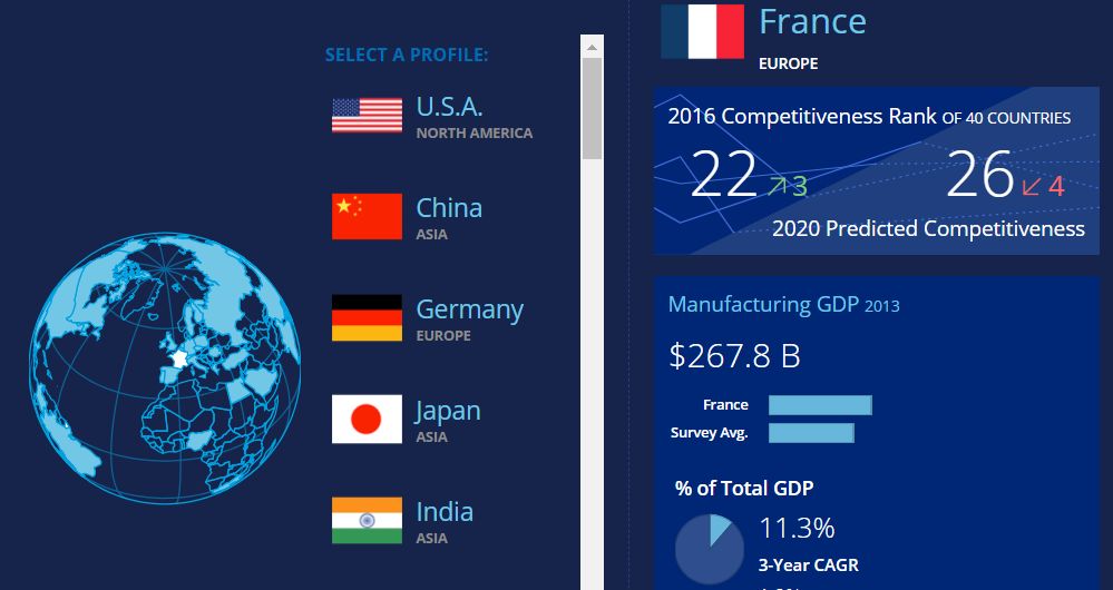 “全球制造业竞争力指数”中法国排名全球22位