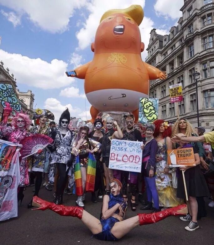 无论是减税,还是促进就业,包括对法律的坚守,都恰好是对他们生存基础的打击,所以川普到了英国这个曾经的保守主义大本营,却被左翼自由、马主义者、LGBT、伊斯兰一起狂怼就不奇怪啦!看看下图这些东西,相比之下还就是这个气球正常点了。