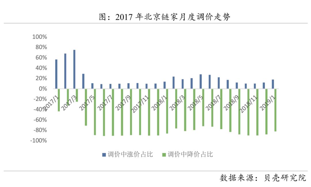 从业主端来看,与调控前业主频繁上调报价不同的是,调控后业主调价行为中"以降价为主"。今年从1月开始,调涨比例在不断增加,意味着卖家信心随成交量增加而逐渐增强。挂牌价方面,自调控后新增业主挂牌均价持续下行,进入2019年后开始保持稳定,可见在市场调整下业主预期逐渐趋于理性。