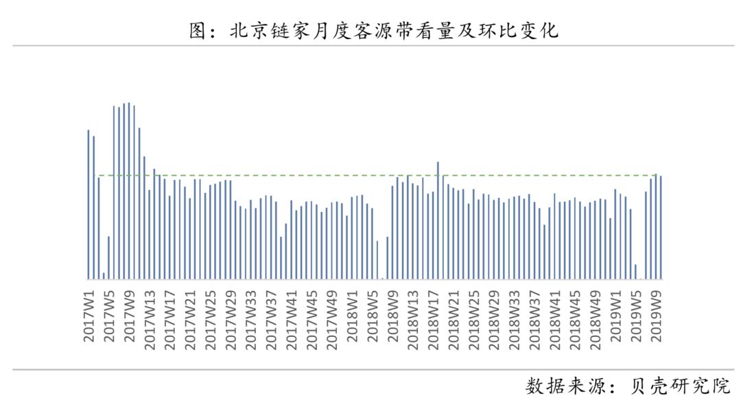 这幅图很重要,直接反映出了市场的需求面,也就是链家经纪人每周的带看量,除了过年期间带客量数据异常之外,其他数据和房价走势高度吻合。其中从317之后,带看量极具下滑,而2019年春节之后,带看量又在高度攀升,证明需求正在喷发。购房者应当把握好时机。