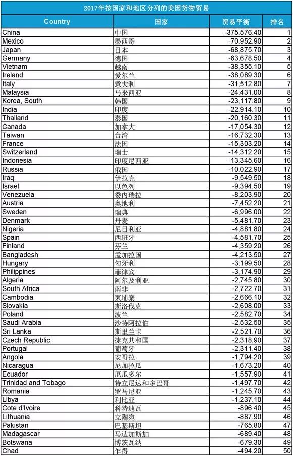 大家看看下面这个图:所有国家都在赚美国的钱。包括日本、德国、法国等国家和美国都是贸易顺差。