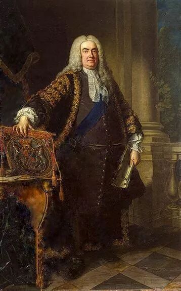 而等到南海泡沫破裂引发危机后,沃尔波尔挺身而出收拾残局,赢得了巨大的威望。乔治一世以及他的继任者乔治二世都对沃尔波尔很是信任,于是1721-1742年沃尔波尔便任首席财政大臣兼财务大臣二十余年,成为了事实上的英国第一任首相(首相兼任第一财政大臣的惯例延续至今,沃尔波尔也是英国历史上在任时间最长的首相)。