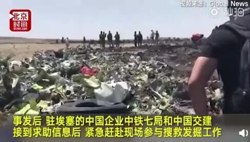1、埃塞空难事故现场,第一时间出现并参与救援的大型工程车辆不是属于埃塞俄比亚的公司,参与救援的人员工装背后写着醒目的汉字“中铁七局”。