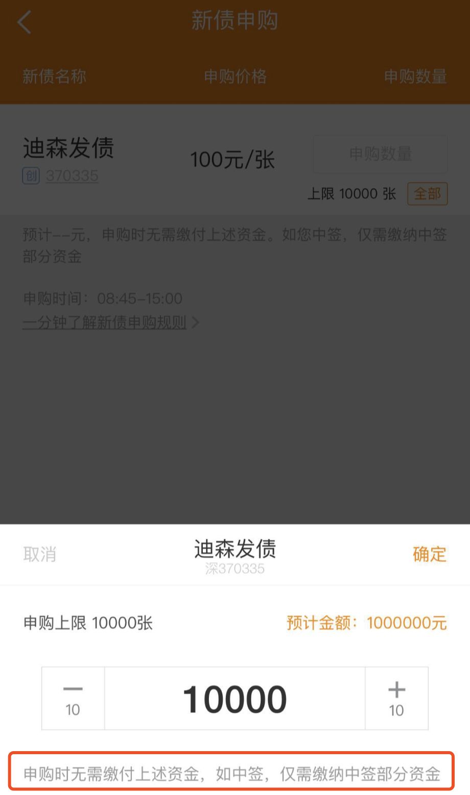 不用紧张,打新债都是先打中、后交钱,而且以我的经验,顶格申购1万张,最后能中到1-2签都是幸运了。