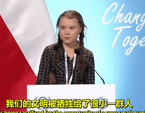 其实早在去年12月的世界联合国气候变化大会上,这位瑞典姑娘就已经明确的提及过:世界经济发展急刹车!