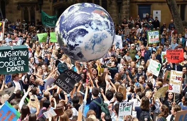 在澳大利亚最大城市悉尼,三万多名学生从市政广场游行到海德公园,振臂齐呼下:必须改变、起来反抗!