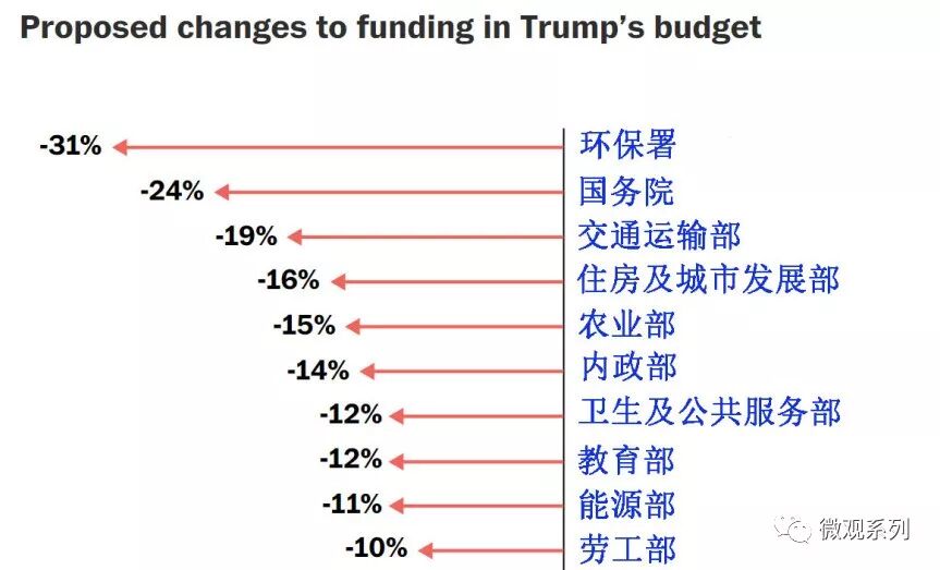 所以国务院就成了继美国环保署之后的,第二个牺牲品,预算大减24%