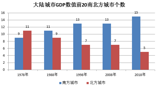 40年前,中国经济TOP20的榜单上还有11个北方城市。40年后,只剩下5个——北京、天津、青岛、郑州、济南。