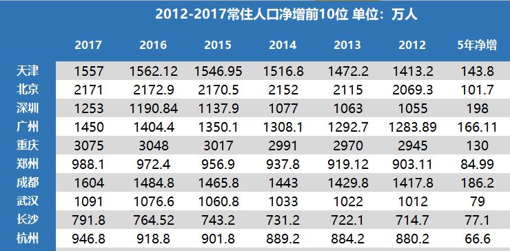 人在流向南方。全国五年来人口净增前十的城市,北方城市只有3个,而前五名全被南方收入囊中。北雁南飞,成为中国人口大规模流动的主要趋势。