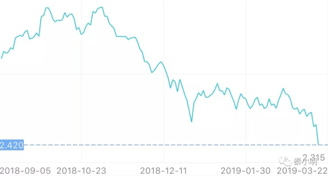 2)美国3个月期国债收益率在昨天的交易中07年后首次超过10年期国债收益率,形成所谓的“倒挂”,这在全球金融市场引起了不小的恐慌。