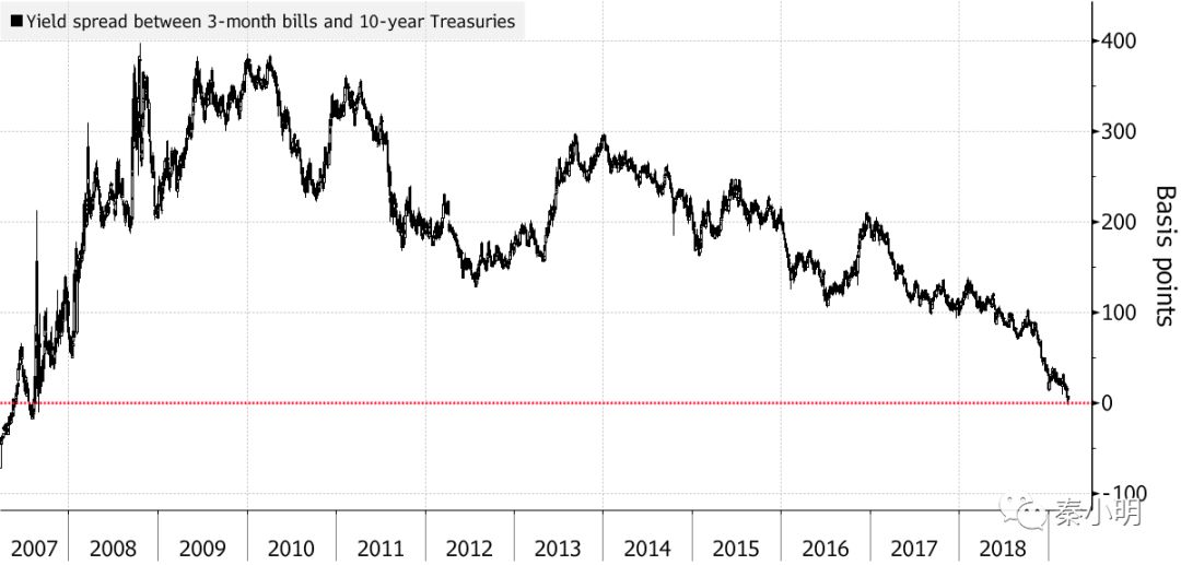 美国3个月和10年期国债收益率2007年后首次倒挂