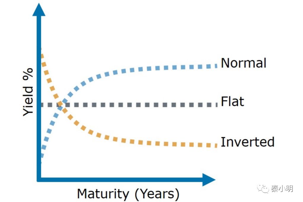 这个图的纵轴就是“收益率”(yield),横轴就是“时间”(maturity)。根据不同的对应关系,收益率曲线典型地被分为三种情况: