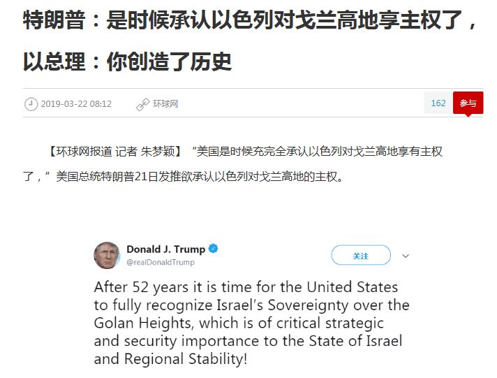 但是!美国承认以色列对戈兰高地主权却是坏了一个大规矩!因为这是公开宣告《非战公约》失效,等于承认日本发动九一八事变,侵略东北有理!