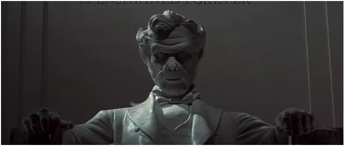 电影《人猿猩球》中凯撒坐在林肯的宝座上,在我看来是暗示他屠杀人类立下了汗马功劳,一景双关,表现得非常好!