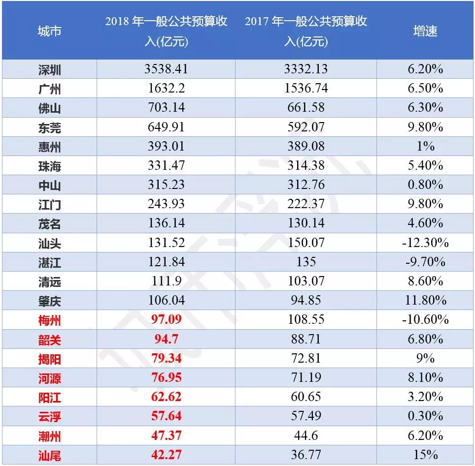 2018年广东有8个城市的一般公共预算收入不到100亿,说实话,仅几十亿的钱还不知道够不够政府日常运作或公务员和事业单位发工资。