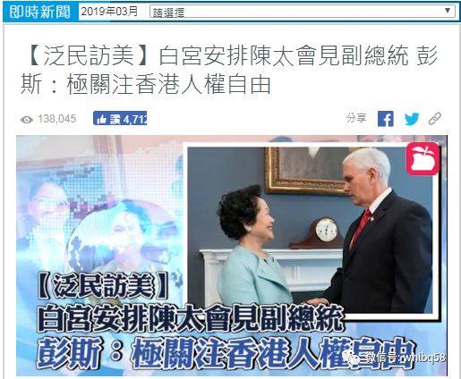 昨天(24日,美国东部时间23日),香港前政务司长陈方安生偕公民党立法会议员郭荣铿等人跑到美国乞求美国政府干涉香港内政,并受到美国副总统彭斯的短暂接见。据香港媒体披露的消息,彭斯接见陈方安生是白宫临时做出的安排。