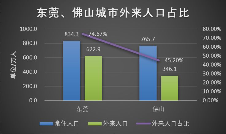 在东莞、佛山这类制造业重镇,外来人口占了大片江山。户籍松动后,将会有更多人冲着当地公共福利而留下来,从而守住了湾区制造业的人力基础。
