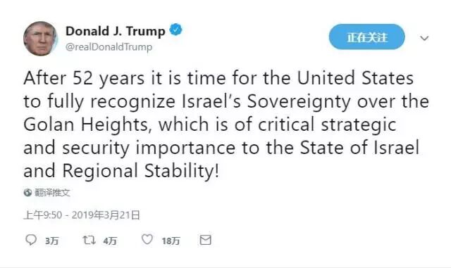 先是宣布承认耶路撒冷是以色列首都,如今特朗普更进一步,宣布承认以色列对戈兰高地的主权,更是令世界舆论哗然,也引发了人们对特朗普意图和美以关系的猜测。