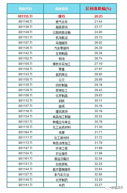 以上行业指数,我是根据年初至今涨跌幅从小到大排列之后选出的30多个行业。