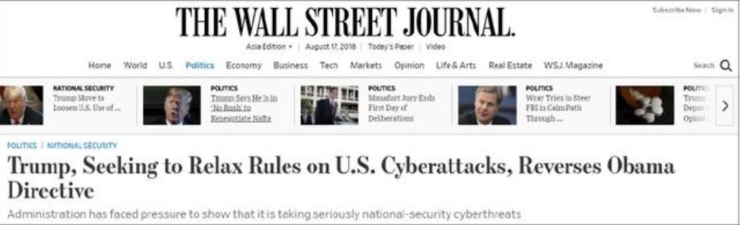 上图:美国《华尔街日报》报道称,特朗普政府上任后极力推翻奥巴马执政期间的政策。