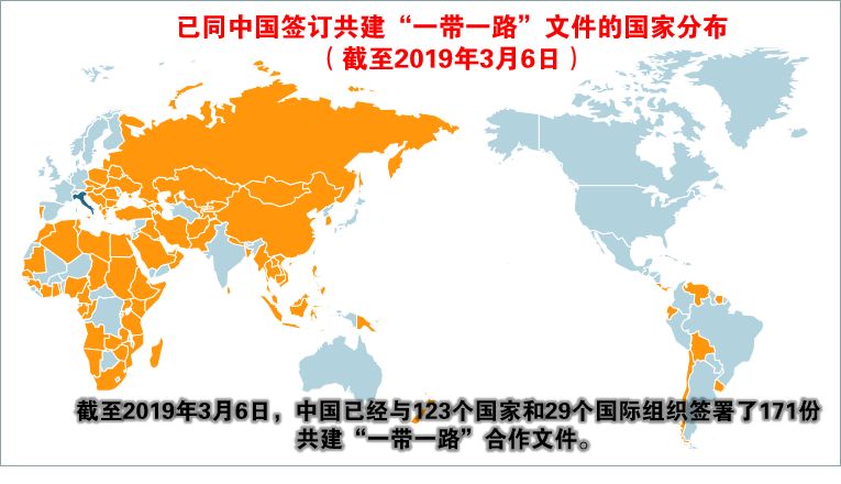 这个图是截至到2019年3月6日的最新数据,目前已经有123个国家与中国签订协议的国家(未来还可能有更多的国家加入)。