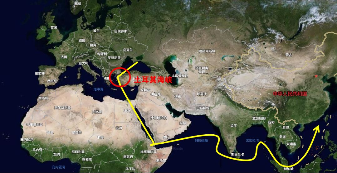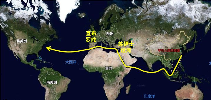 中国80%的贸易都是通过南海→印度洋→苏伊士运河→地中海→直布罗陀海峡→大西洋,然后运输到美国人口密集的东海岸。