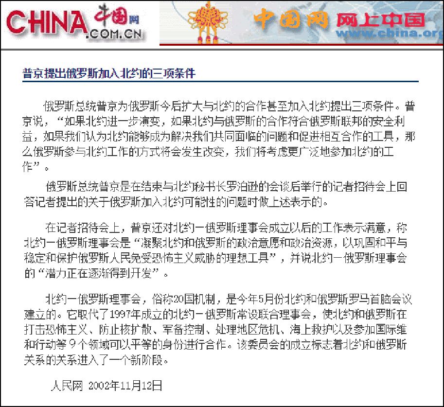 事实上,在2002年的时候,普京就多次提出要加入北约。