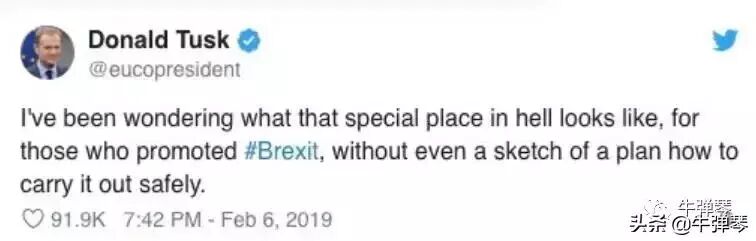 欧洲理事会主席图斯克,甚至放出了这样的狠话:那些推动脱欧者,我怀疑“地狱里那个特别的地方是什么样子”正等待着他们。