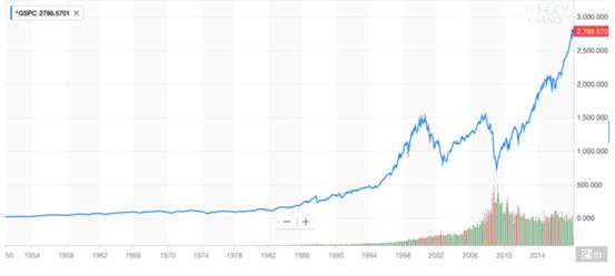 由于组成标普500指数的股票是在纽交所和纳斯达克(NASDAQ)的上市公司当中市值最大的500家公司,“集思广益”的市场自动筛选出了广大投资者最认可的500只股票,而且更为重要的是,这个股票池是动态变化的,市值下跌、被投资者抛弃的公司自然而然地被排除在名单之外,这也是投资指数的被动投资能够战胜不少主动管理的基金的原因所在。