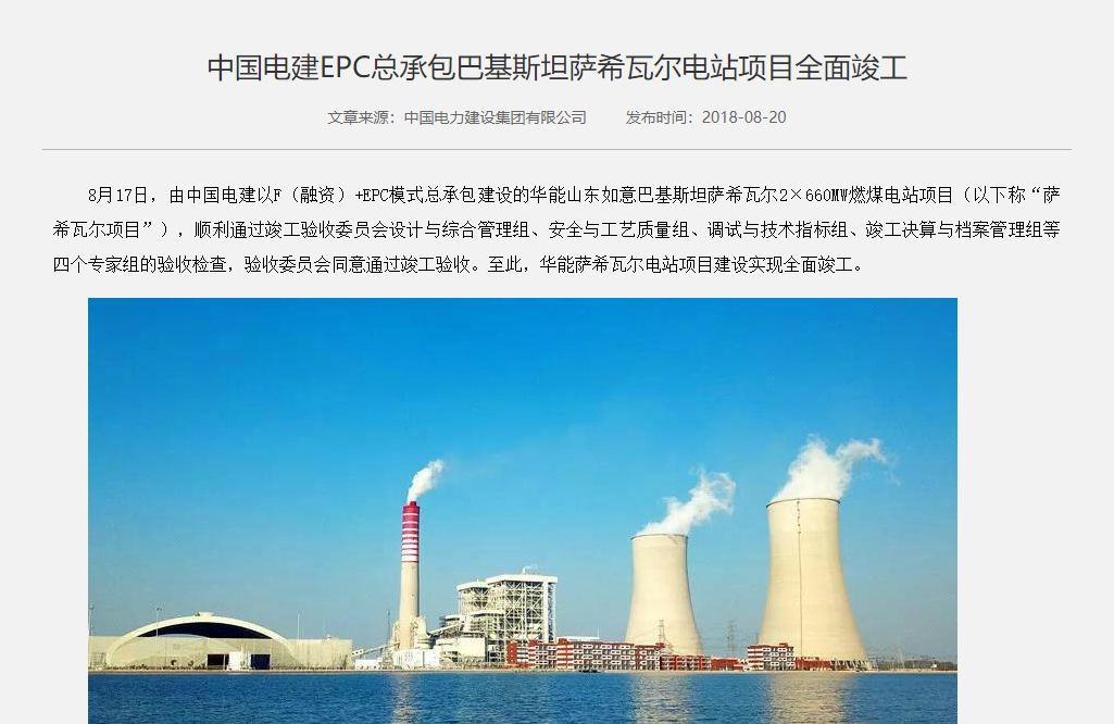 萨西瓦尔电站1320兆瓦项目,一举填平巴铁四分之一的电力需求,目前已完工。
