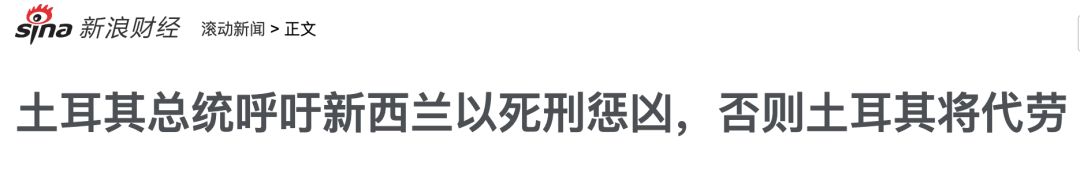 在新西兰大屠杀事件爆发后,那个被抓的凶手可能会被判几百年且不容许减刑。这已经是新西兰最高的刑罚,因为整个西方世界或者说发达国家都没有死刑。但是,埃尔多安对于新西兰没有死刑非常不满,他说必须判凶手死刑,否则土耳其将代劳……卧槽,这话的意思是要和新西兰开战吗?