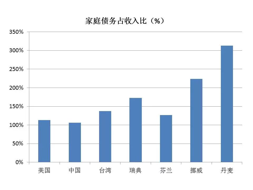 但大家可能不知道的是,早在2014年,美国的家庭债务收入比就达到了113%,而北欧国家中的瑞典这个数字则高达173%,丹麦更离谱,直接给整到了313%。