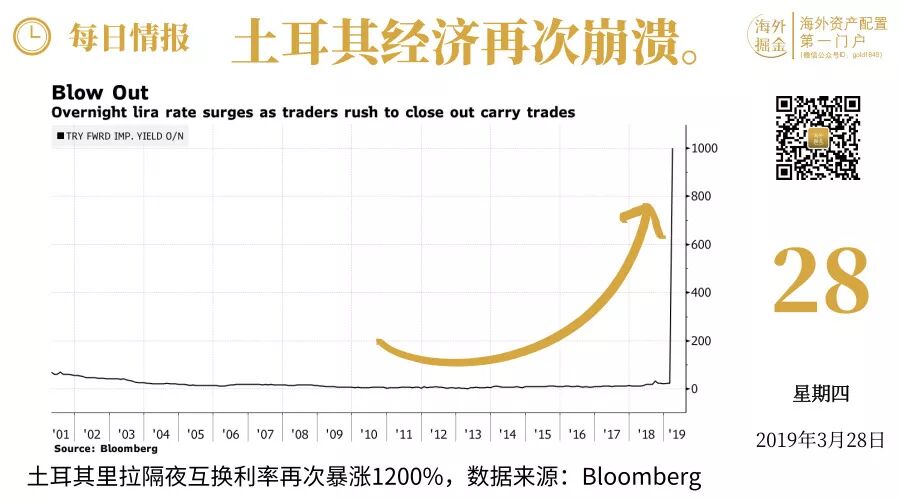 去年8月,土耳其里拉一天内暴跌18%,民众疯狂用里拉兑换美元和黄金。转眼间,3月27日晚,土耳其股债汇三杀来袭。股指一度暴跌7%,刷新去年8月以来新低,抹平年内所有涨幅。里拉重挫2.6%,隔夜互换利率甚至跳涨至1200%。