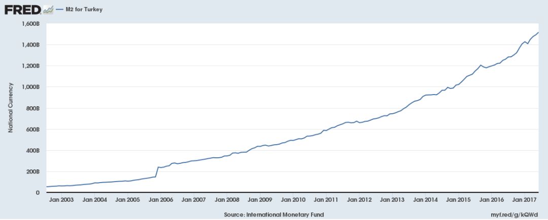从2003年至今,土耳其的M2整整增加了24倍!这个数字放眼全球,仅有少数几个国家可以相提并论。