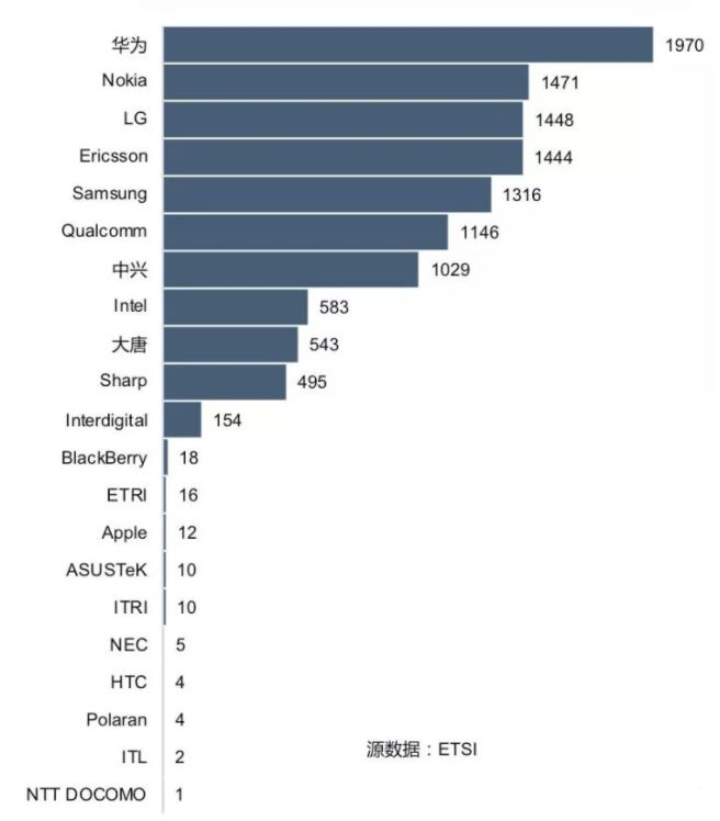 截止到2018年12月,中国华为在世界5G声明专利量排行榜上高居世界第一,在5G预定市场中,仅此一家中国公司的市场份额,就超越了世界其他同类厂商总和还多:这还是在利润最高的美国市场,通过立法屏蔽华为的情况下达到的!