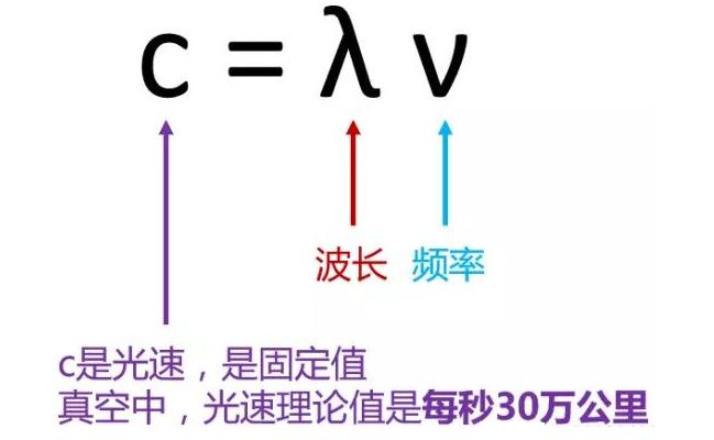 而拉姆达(λ),则代表电磁波的波长,v则代表电磁频率,两者之间呈负相关的关系。