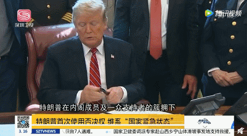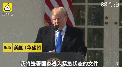 2019年2月15日上午,美国总统特朗普签署“国家紧急状态”行政令,为了能有钱修墙,宣布美国进入“国家紧急状态”。