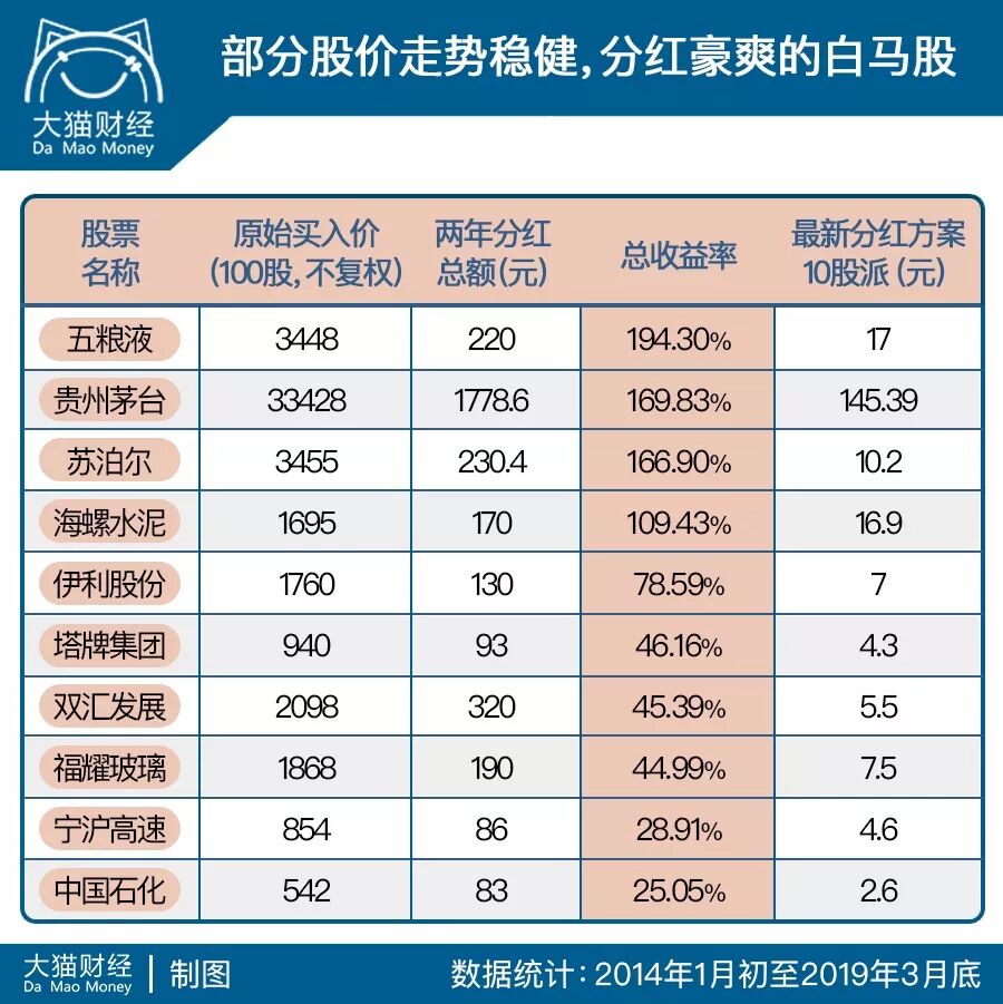 两年前你花不到3500块钱买100股五粮液,现在这些钱带来的收益能有6700块,花3.4万买100股茅台,能带来接近5.7万的收益,重要的是,这些股票还在不断的延续高分红,而且股价也有相当的保证。