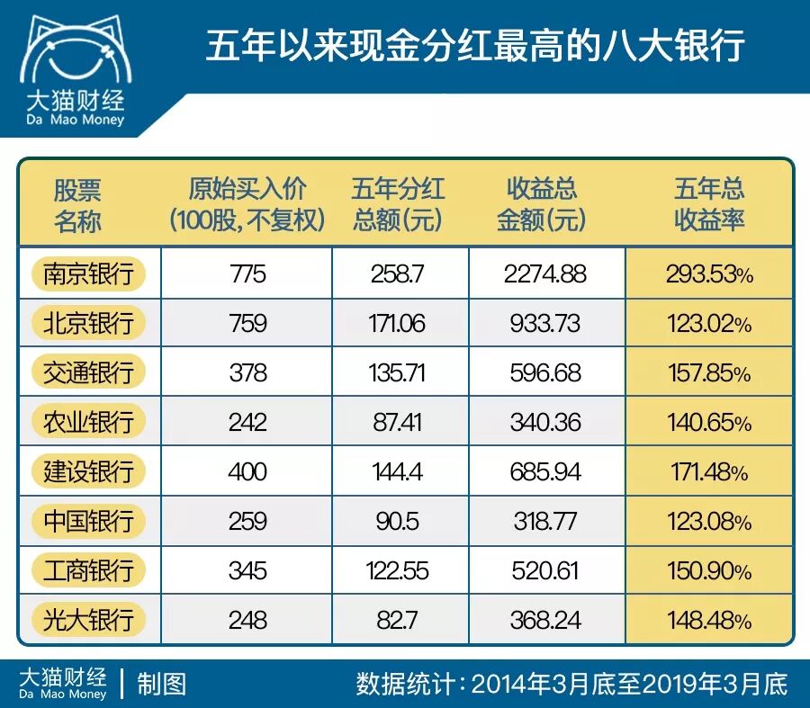 最近猫哥邻居阿姨兴高采烈的提到小区旁一家银行五年期定期存款又涨了,飙到5.45%。看阿姨欢呼雀跃的神情,猫哥不好意思说实话:这笔收益并不算高,还不如买银行股划算。