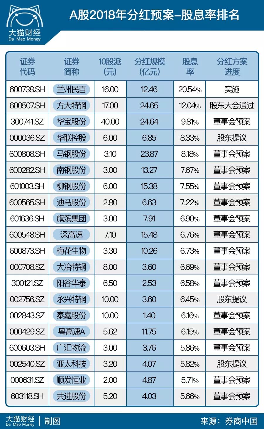 兰州民百已每10股派现金16元,分红收益率竟有20%左右,家电白马股小天鹅A,每10股派现40元。同样10派40的,高喊“活下去”的万科,每10股派送10.7元(含税),共分红118亿,分明是活得好好的……