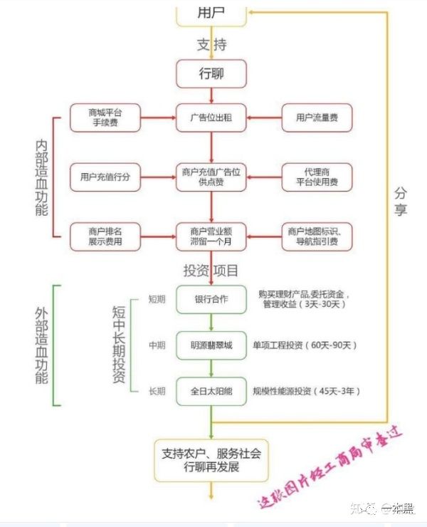 不论是内部盈利还是外部投资,行聊没有任何属于自己的资产,一旦用户投资中止就会跨盘,而所谓的外部投资项目,不论是房产还是能源,其回本速度远赶不上跨盘速度。更别说支撑70%的回报率了。