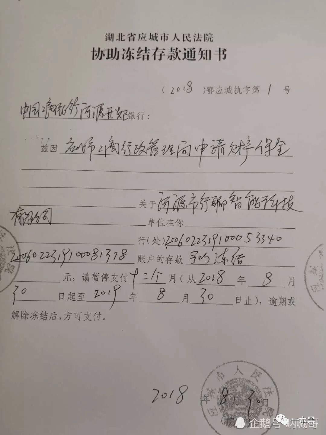 然而在2018年8月30号这天,一切戛然而止。行聊的银行账户突然被湖北应城工商局冻结,但此前行聊却未曾收到任何通知。