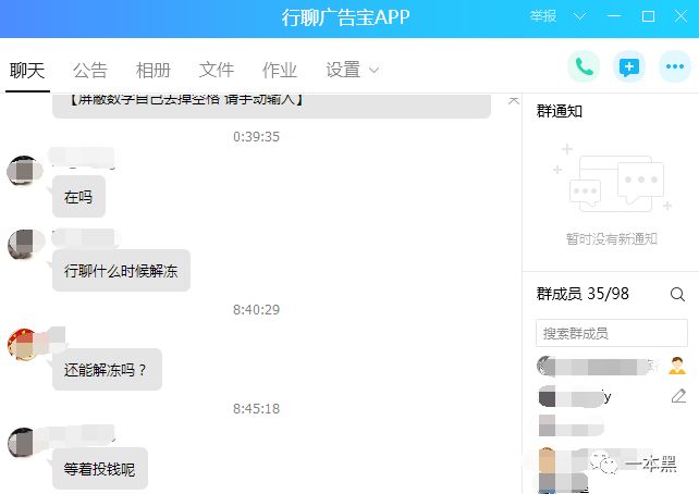 在行聊的QQ群里,至今还有人在问何时解封,准备续投。