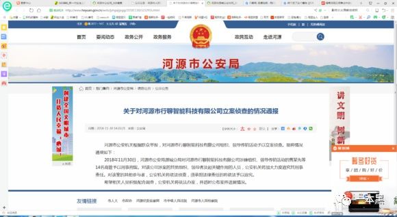 2018年11月30号,河源市公安局发通告称行聊涉嫌传销,包括公司法人在内的14名高管已被刑事拘留。