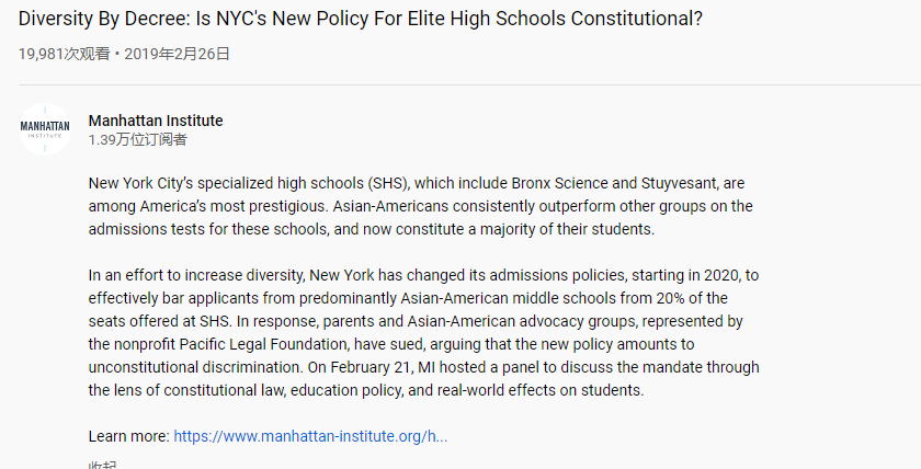 这个辩论主要就是纽约的一些精英高中一直搞入学考试,亚裔同样占了绝对优势,从2020年起,纽约改变招生政策,主要就是阻止亚裔的优势,于是太平洋法律基金会代表亚裔美国人提起诉讼,认为新政策是违宪歧视。